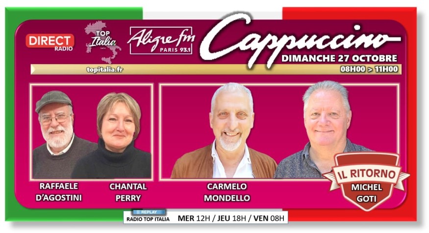 • Cappuccino # 27 octobre 2024 - Invité Carmelo Mondello animateur d'Italoscopie sur RVVS et TopItalia