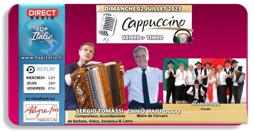 Cappuccino # 02 juillet 2023 - invités Sergio Tomassi, accordéoniste et Ennio Marrocco, maire de Cervaro