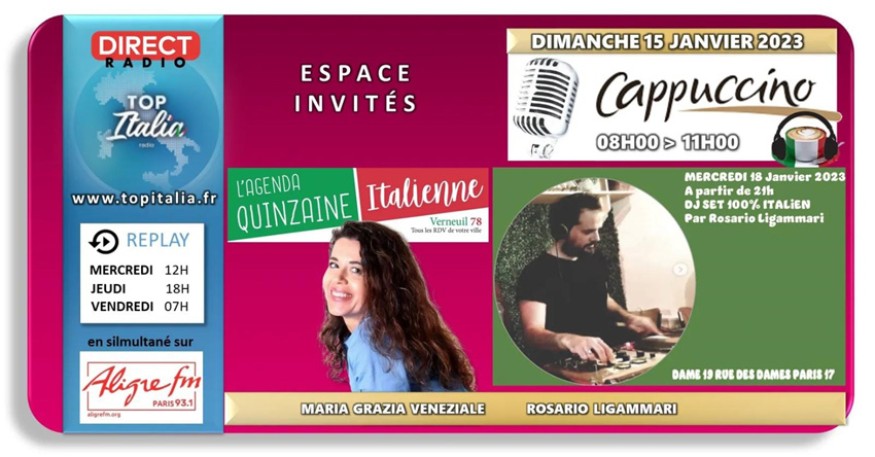 Cappuccino # 15 janvier 2023 - invités Maria Grazia Veneziale et Rosario Ligammari
