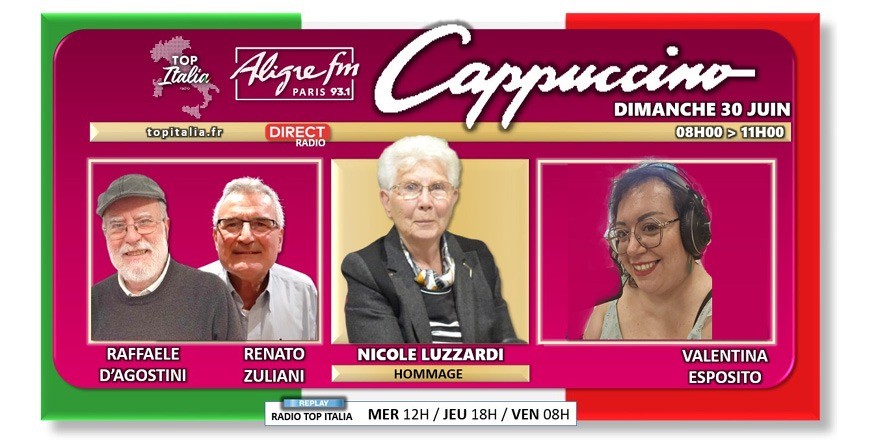 • Cappuccino # 30 juin 2024 émission présentée par Valentina Esposito avec un hommage à Nicole Luzzardi